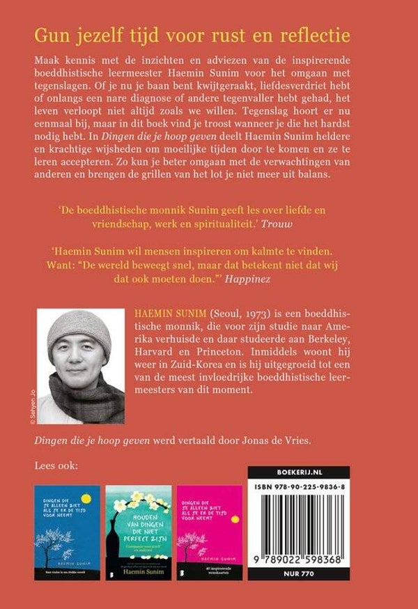 De Koreaanse boeddhistische monnik Haemin Sunim geeft les over verschillende levenskwesties, van liefde en vriendschap tot werk, levensdoelen en spiritualiteit. Zijn inzichten en adviezen helpen om in het moderne, drukke leven te zoeken naar rustpunten. Zo legt hij bijvoorbeeld uit hoe je mindful kunt omgaan met negatieve emoties als woede en jaloezie. Sunim laat het belang zien van sterke relaties met anderen en benadrukt dat je vergevingsgezind en mild moet zijn tegenover jezelf.