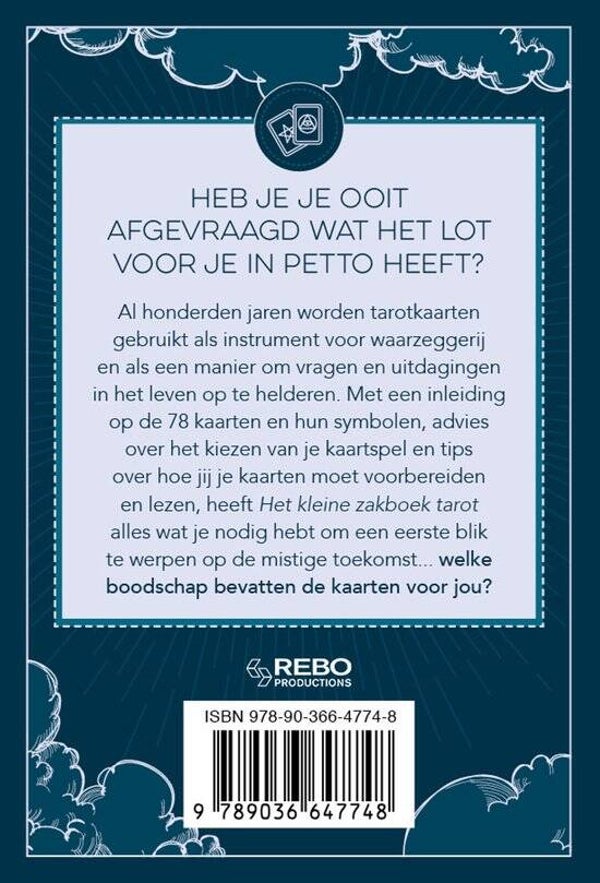 Heb je je ooit afgevraagd wat het lot voor je in petto heeft? Al honderden jaren worden tarotkaarten gebruikt als instrument voor waarzeggerij en als manier om vragen en uitdagingen in het leven op te helderen. Met een inleiding op de 78 kaarten en hun symbolen, advies over het kiezen van je kaartspel en tips over hoe jij je kaarten moet voorbereiden en lezen, heeft het kleine zakboek tarot alles wat je nodig hebt om een eerste blik te werpen op de mistige toekomst... welke boodschap bevatten de kaarten voor jou?
